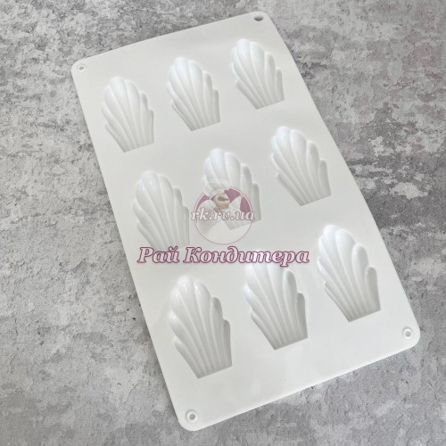 Форма силіконова "Мушля-мадлен" / планшет / 9 шт. / білі