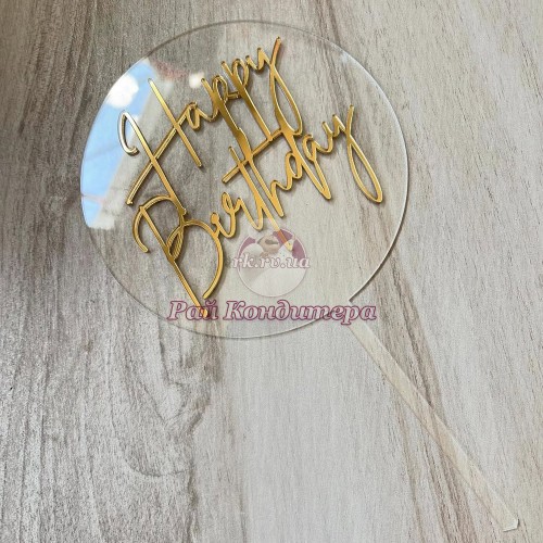 Мітки: Топпер, "Happy, Birthday", акрил, прозорий, золото, 13х24