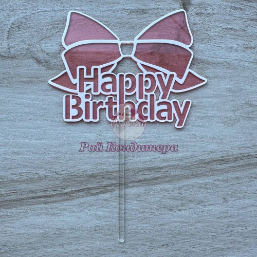 Мітки: Топпер, "Happy, Birthday", акрил, рожевий, 10х15