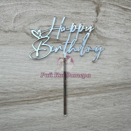 Мітки: Топпер, "Happy, Birthday", акрил, срібло, 12х16, серце