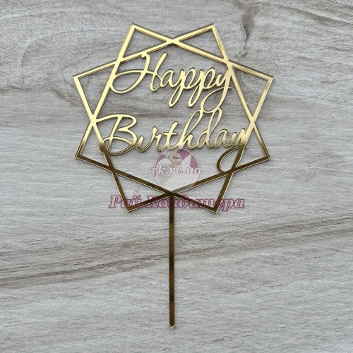 Мітки: Топпер, "Happy, Birthday", акрил, золото, 10х15, квадрати