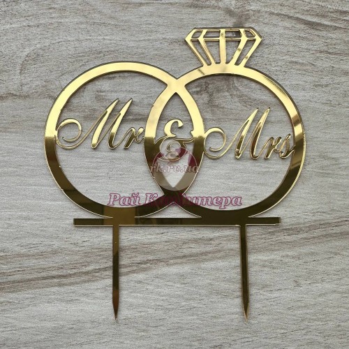 Мітки: Топпер, "Mr&Mrs", акрил, золото, 12х16, обручки