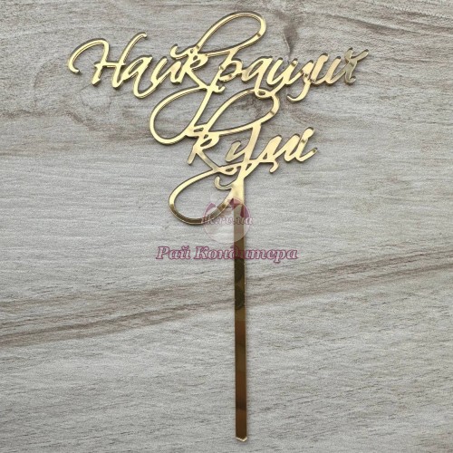 Мітки: Топпер, "Найкращій, кумі", акрил, золото, 13х18