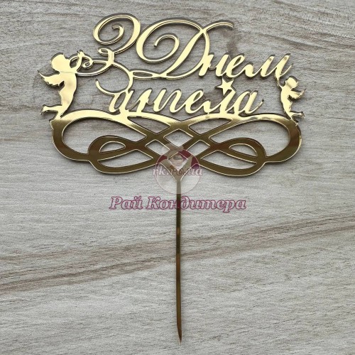 Мітки: Топпер, "З, Днем, ангела", акрил, золото, 15х18
