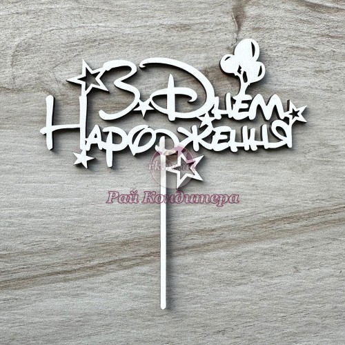 Мітки: Топпер, "З, Днем, народження", ХДФ, білий, 15х15, кульки, зірочки