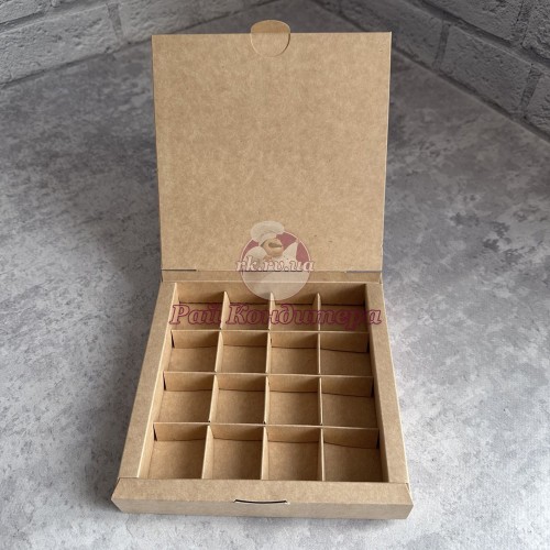 Мітки: Коробка, для, цукерок, печива, 185х185х35, крафт, без, вікна