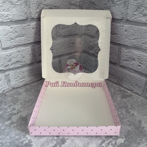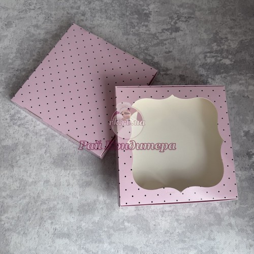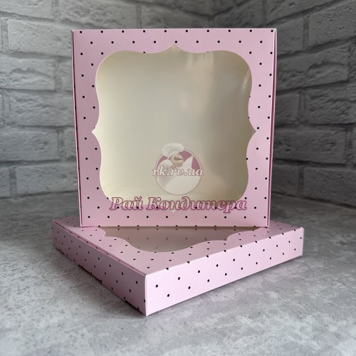 Мітки: Коробка, для, цукерок, печива, 200х200х30, рожева, горошок, вікно