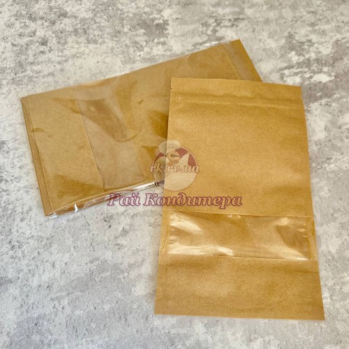 Пакет дой-пак 14х24 см / крафт / вікно / 10 шт