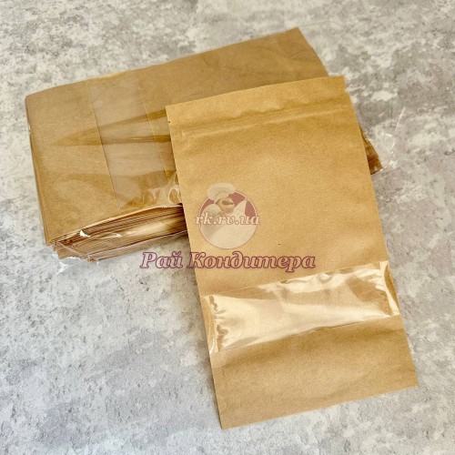 Пакет дой-пак 14х24 см / крафт / вікно / 50 шт